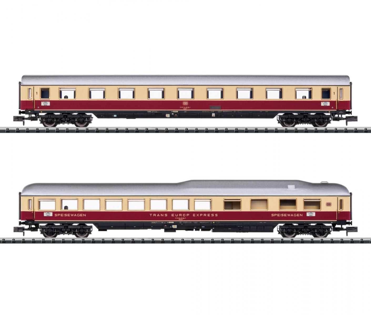 ドイツ連邦鉄道(DB)の TEE「ラインプファイル」 編成(1971年夏頃)の姿を再現した客車セットです。