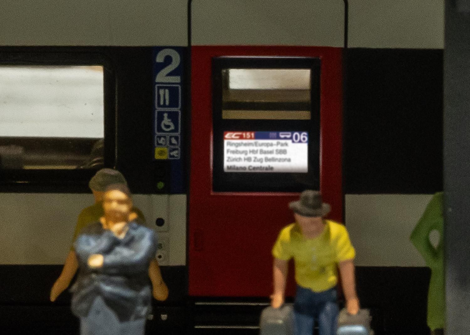 国境を越えて運行される EC151列車「フランクフルト/マイン – フライブルク – バーゼル – チューリッヒ – ミラノ中央駅」 の編成をモデル化しています。