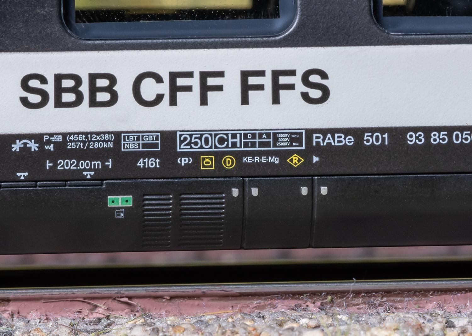 このモデルは、スイス連邦鉄道(SBB)の**EC250形高速電車「RABe 501 Giruno」**を再現したものです。